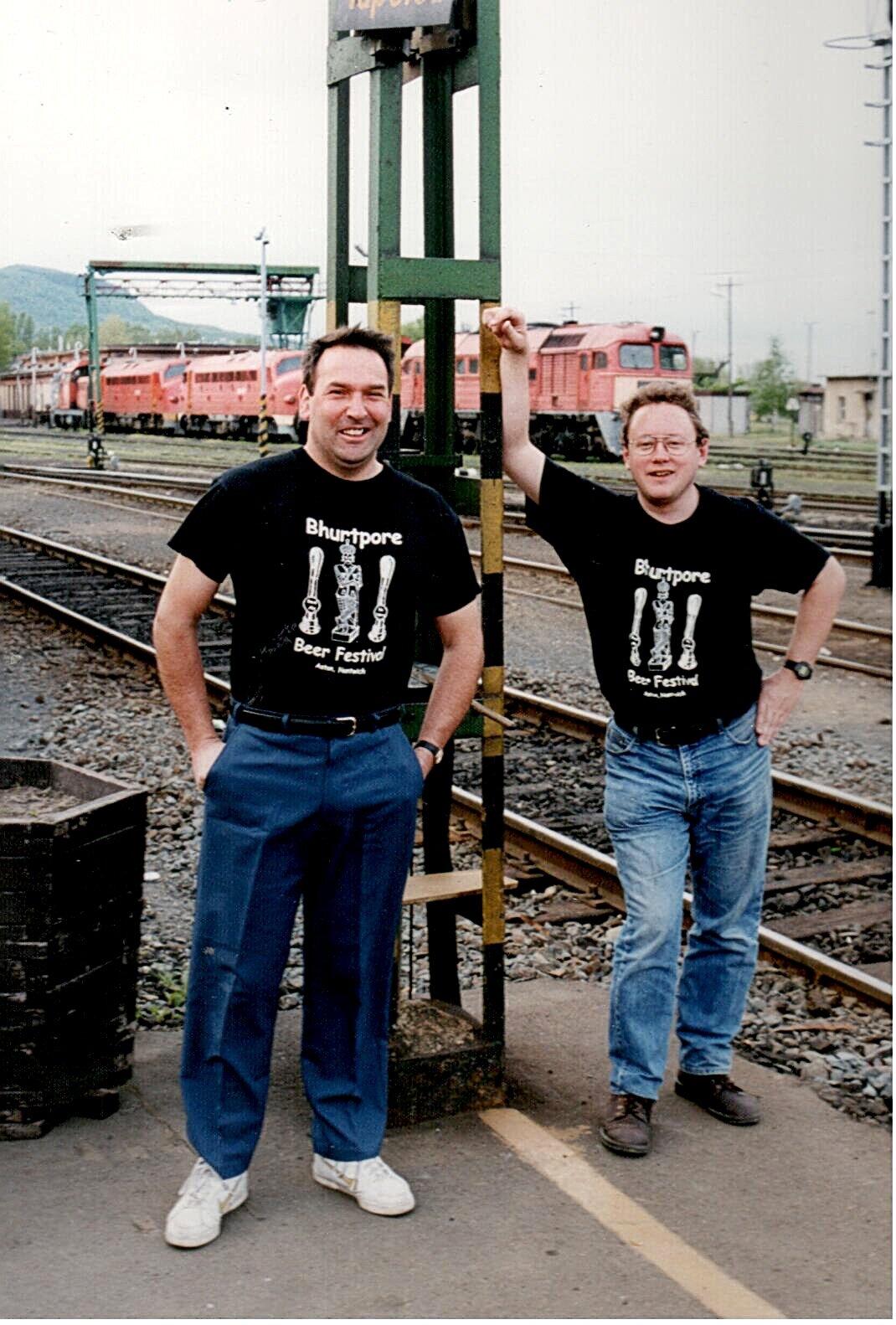 Mid '90's. Kevin Coumb and Dave Hodkinson (who didn't previously know each other) meet at Tapolea railway station in Hungary. Both had been staying, by chance, in a small hotel in the town and came down to breakfast wearing the same shirts.